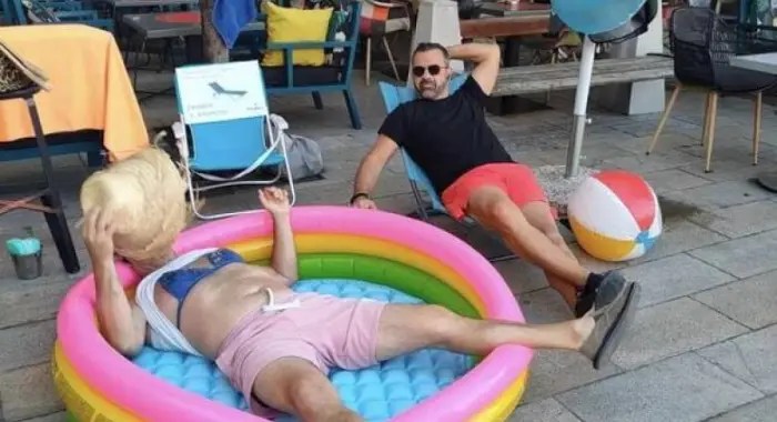 Έβαλε πισίνα και τοποθέτησε ξαπλώστρα έξω από το κατάστημά του για δροσερές αυγουστιάτικες ημέρες.